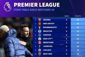 热刺自第19轮以来14场0胜仅获5分,同期积分英超垫底