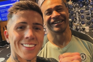 恩佐社媒晒出与威利·伊萨在俱乐部健身房的合照,两人都露出笑容。威利·伊萨曾是橄榄球运动员,他在退役后加盟切尔西教练组,担任球员支持与发展主管。