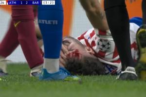 体育资讯04月15日讯 欧冠1/4决赛次回合,马竞vs巴萨,鲁杰里被加维肘击,倒地满脸是血,加维染黄